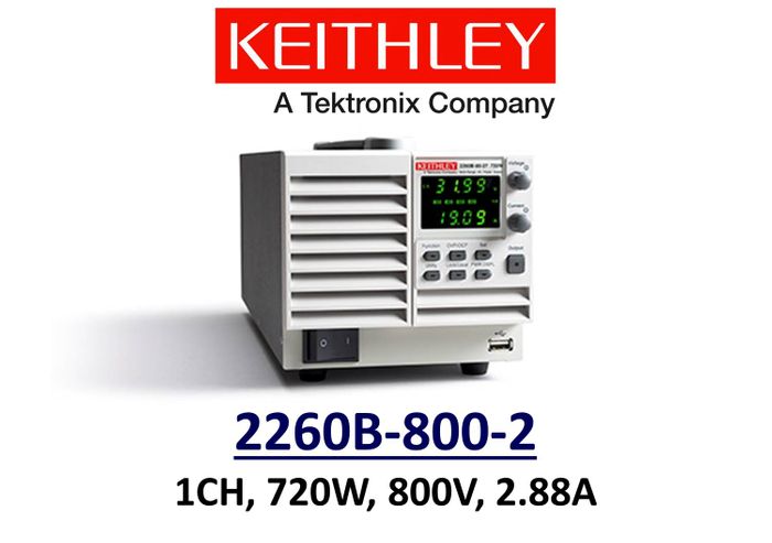 Keithley 2260B-800-2 benchtop linear power supply, 720w 800v 2.88A, 1 channel, low noise, prog.