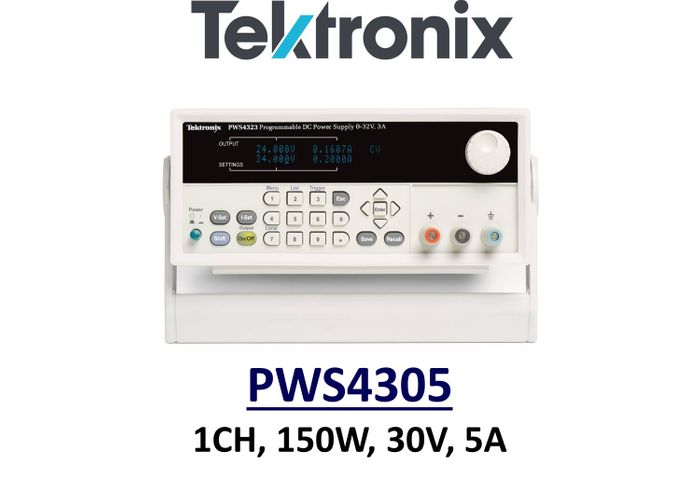 Tektronix PWS4305 benchtop linear power supply, 150w, 30v, 5A, 1 channel, low noise, prog.