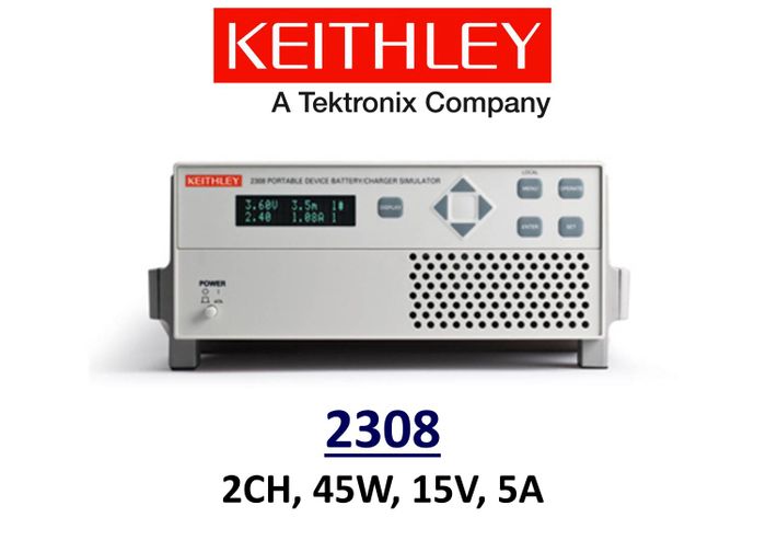Keithley 2308 portable Device Battery Charger/Simulator, 2 chans, 45W, 15V, 5A, Rapid Recovery