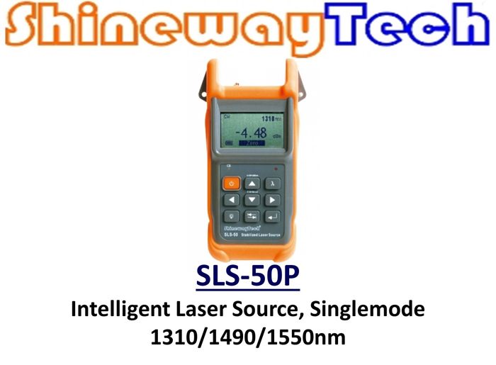 SLS-50P, INTELLIGENT LASER SOURCE, TRI-WAVE, SM, SC/APC OPTICAL CONNECTOR 1310, 1490, 1550nm, > -3dBm; Output Display, Auto Wavelength Recognition (when used with OPM-50), Min 0.01dB/step within 6dB, Backlight Display, Rechargeable battery.