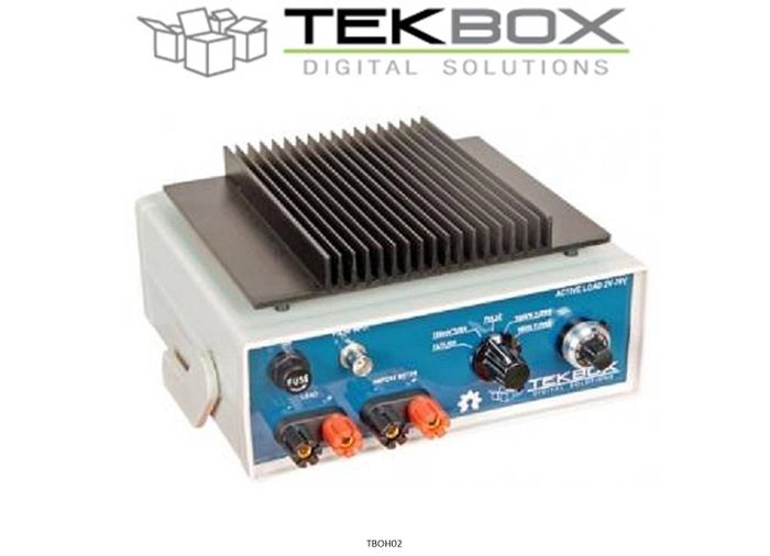 The TBOH02 is a precision self powered active load. It does not need a separate supply voltage and operates as low as 2V. Its features include constant resistance and constant current mode. A 10 turn potentiometer with dial, a range switch and a precision reference enable accurate setting of current or resistance. Furthermore it can be controlled by an external voltage.