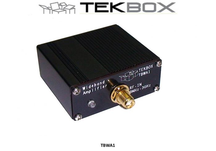 The TBWA2/20dB and TBWA2/40db wideband amplifiers are connected between EMC probe and Spectrum Analyzer to increase the dynamic range of the measurements.