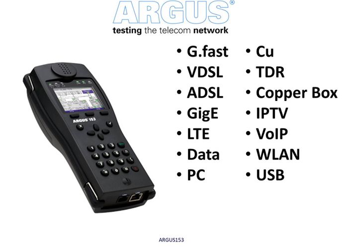 Compact, robust and light: the ARGUS 153 multifunction (ADSL and VDSL) measuring device tests interfaces and services rapidly and reliably – and offers great value for money.