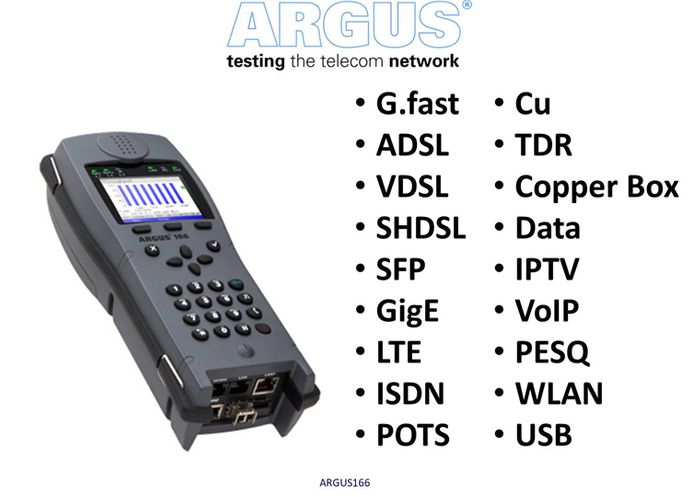 No other tester offers so many interfaces and functions: the ARGUS 166 combines all commonly used broadband (xDSL, GPON, LTE) and Gigabit Ethernet interfaces with comprehensive triple-play functions in a single measuring device.