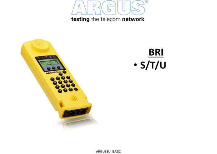 The ARGUS3u Basic tests BRI S/T and U accesses in TE and leased line modes plus POTS interface optionally. The user friendly test set provides automatic testing of accesses, services and supplementary services. It also supports voltage and signal level measurements, as well as BERT(64k). The extremely lightweight handheld tester is particularly user-friendly thanks to its intuitive menu structure.