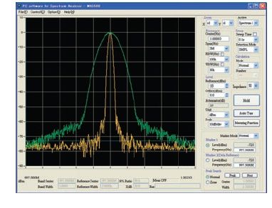 MAS500 IS A SOFTWARE TO CONTROL THE SPECTRUM ANALYSER. THE SCREEN IMAGES IS STORED BY BMP FORMAT AND THE SPECTRUM IS STORED BY CSV FORMAT (FREQUENCY AND LEVEL), IQ DATA IN REAL TIME MODE CAN BE TRANSFERRED TO PC AT A RATE OF 19MS/FRAME