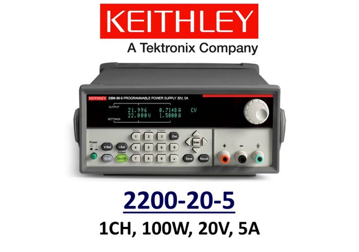 Keithley 2200-20-5 benchtop linear power supply, 100w, 20v, 5A, 1 channel, low noise, prog.