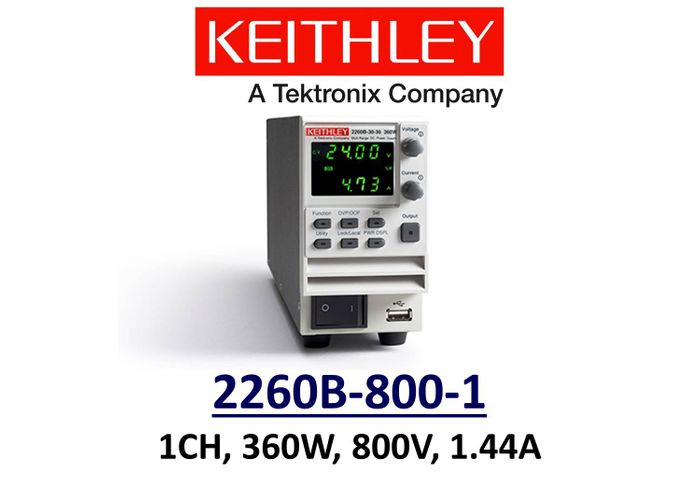 Keithley 2260B-800-1 benchtop linear power supply, 360w 800v 1.44A, 1 channel, low noise, prog.